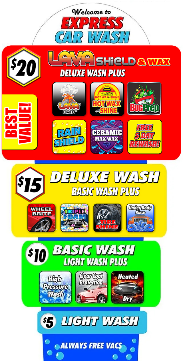 We're more than your average car wash. We can tailor fit your needs with several choices of wash packages and many a la carte extras that we offer.